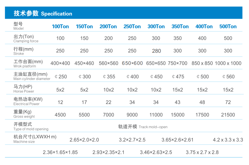 · 軌道開(kāi)模,掀模角度可達(dá)90度,方便人員操作,適合二層模具使用;