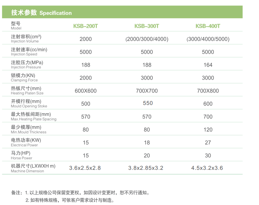 菜單產品中心Product center 全自動真空硫化機 全自動平板硫化機 全自動硅橡膠硫化機 高精密度全自動真空成型機 高精密度全自動油壓成型機 高精密度全自動射出成型機 特殊定制機型 周邊輔助設備 IMD氣體高壓成型機 熱門產品 →先進先出立式橡膠射出硫化機 KSU200-1500(Tons)→臥式橡膠射出硫化機 KSA200-2000(Tons)→先進先出臥式硅膠射出硫化機 KSB 200-500(Tons) 返回您的位置:首頁 → 產品中心 → 全自動硅橡膠硫化機 先進先出臥式硅膠射出硫化機 KSB 200-500(Tons)類別:全自動硅橡膠硫化機 簡介:高精度光學尺控制射出量,配合三段式射出控制; 在線咨詢 返回列表 產品說明 機臺特點· 全比例式油路系統;· 流線型無死角回料逆止閥設計;· 全方位電腦顯示控制系統;· 高精度光學尺控制射出量,配合三段式射出控制;· 借有日制高科技紅外線安全電眼;· 雙螺旋式回路溫控系統;· 多段式入料氣泡消除設計;· 可配合冷熱流道流料模具設計。· 大容量硅膠進料炮筒,可一次性放料20kg-25kg 技術參數 適用產品 硅膠工藝品、電力絕緣產品、性用品、醫(yī)療用品、體育用品和廚房用品等。 相關產品 先進先出立式橡膠射出硫化機 KSU200-1500(Tons) 臥式橡膠射出硫化機 KSA200-2000(Tons) 先進先出臥式硅膠射出硫化機 KSB 200-500(Tons) 立式液態(tài)硅膠射出硫化機KSLS-850系列
